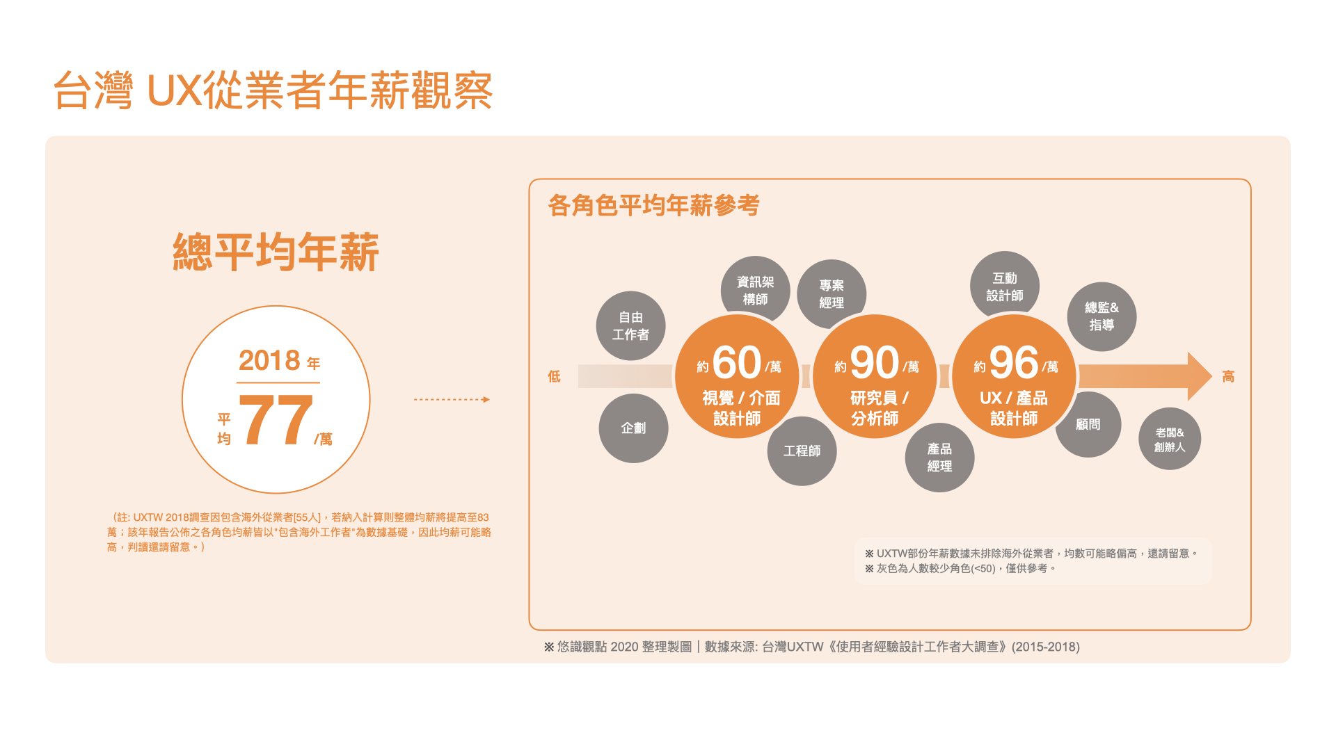 ※ 資料來源: 悠識觀點 2020 整理自台灣 UXTW《使用者經驗設計工作者大調查》(2018)
